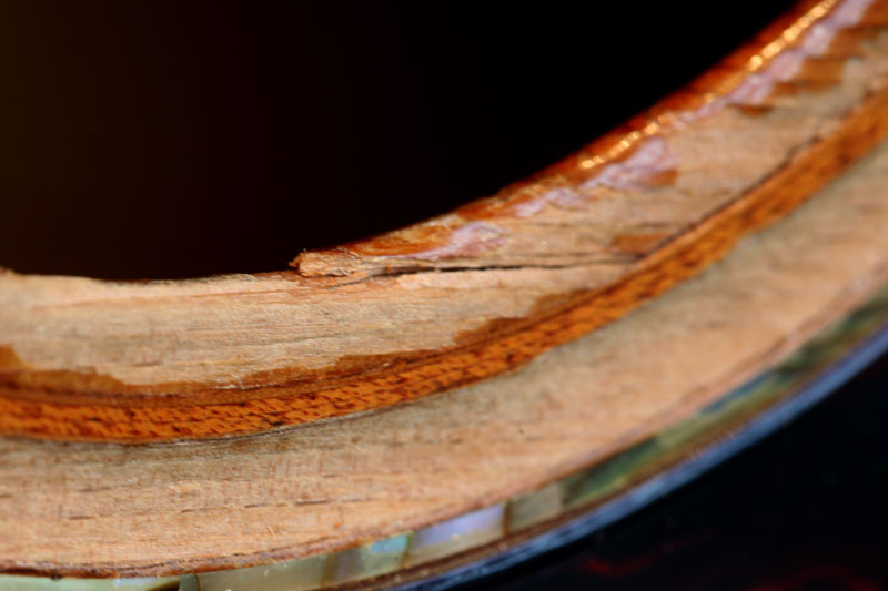 | The cracked soundhole of the DY-66... |